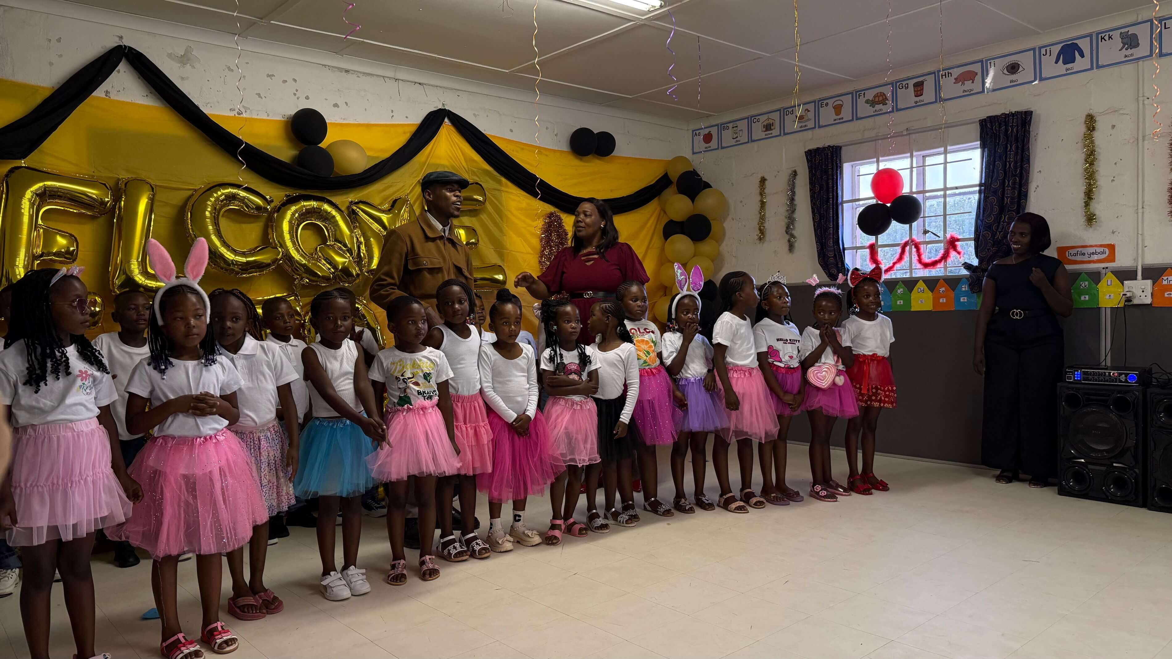 Nach dem obligatorischen Bericht der Schulleiterin Nandipha Mtanyana hielt Wanda Batyie, ein ehemaliger Schüler der Vorschule Funimfundo, eine Rede, in der er auf isiXhosa, gemischt mit ein paar englischen Wörtern, von seinen Erfahrungen in Funimfundo und seinem weiteren Werdegang berichtet hat. Eindringlich ermunterte er die Eltern, für die weitere schulische Ausbildung der Kinder zu sorgen. Ein eindringlicher Appell, der hoffentlich wirksam sein wird (siehe auch unser Gespräch mit Wanda unter „Aktuelles“ vom 8.12.2025).